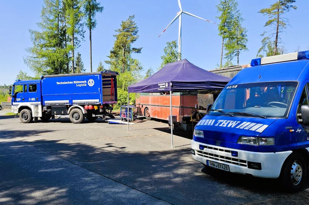Mit dabei waren THW-Helferinnen und Helfer aus Arnsberg, Biedenkopf, Dillenburg, Gießen, Marburg, Siegen und Wuppertal. Aus dem Baukasten der unterschiedlichsten THW-Fachdisziplinen kamen Personal und Technik der zwei Fachzüge Kommunikation sowie Logistik, der Bergungsgruppe, der beiden Fachgruppen Elektroversorgung sowie Notversorgung und des Trupps UL (Drohnen) zum Einsatz.